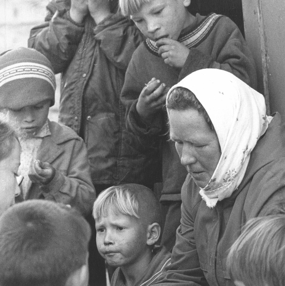 Некомплектная школа. Дети с учителем на пришкольном огороде. Удмуртия, 1980-е гг.