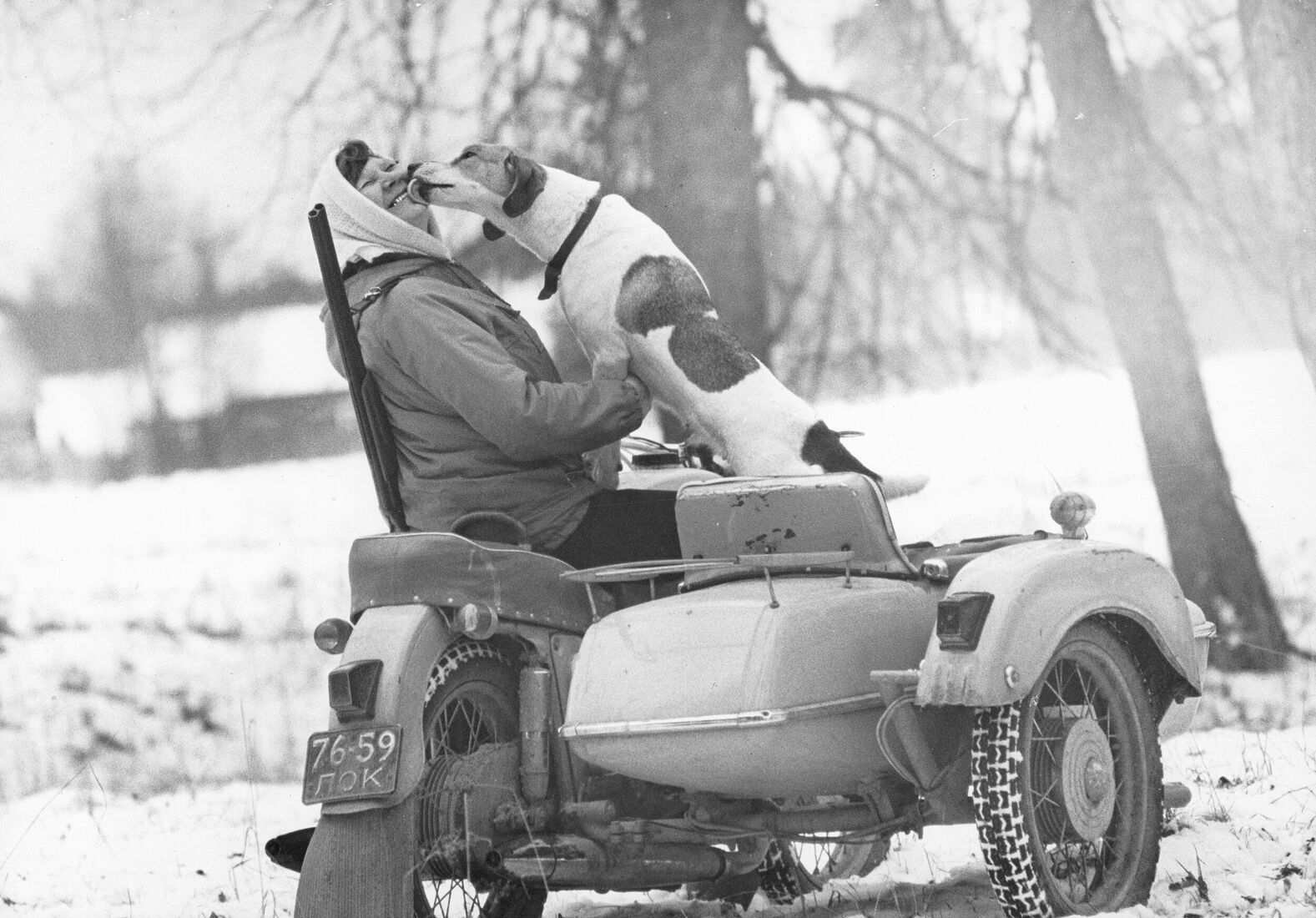 Ариадна Бабарика, лесничий, со своей собакой Сильвой. д. Сомино, Ленинградская область, 1980-е гг.
